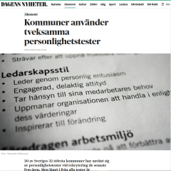 30 av Sveriges 32 största kommuner har använt sig av personlighetstester vid rekrytering de senaste fem åren. Men långt i från alla tester är kvalitetssäkrade. – Det handlar ju om skattepengar. Ska man bedöma vanliga människor ska det ske på ett schyst sätt, säger arbetspsykologen Sara Henrysson Eidvall. Det skriver Dagens Nyheter i en artikel Läs mer…